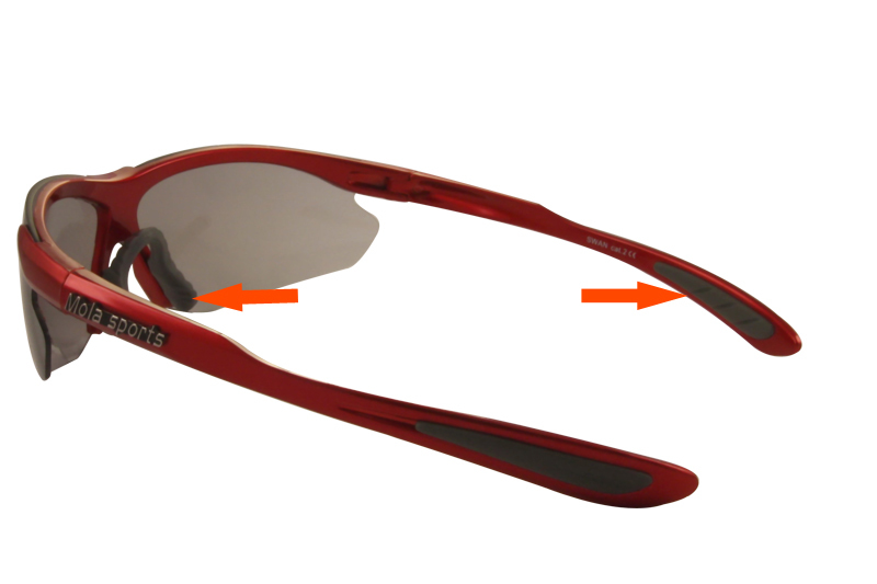 MOLA SPORTS摩拉運動太陽眼鏡 所有的鼻墊 腳墊都採用了TPR材質戴起來舒適柔軟 而且止滑.讓你在戶外運動時 眼鏡不會隨意晃動.